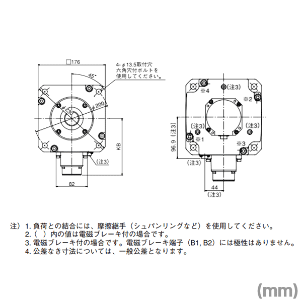 ●電磁ブレーキ仕様:電磁ブレーキは保持用です。