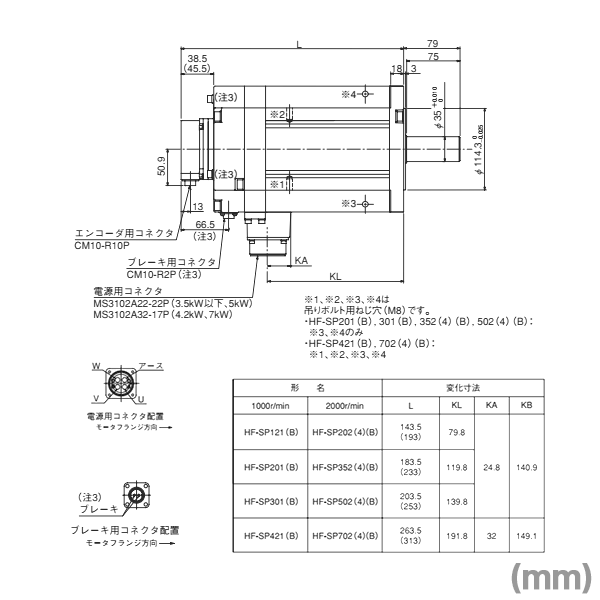三菱電機 HF-SP5024B サーボモータ HF-SP 2000r/minシリーズ 400Vクラス 電磁ブレーキ付 中慣性・中容量 定格出力容量 5kW 慣性モーメント 107J NN