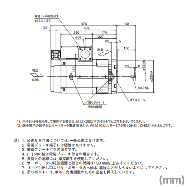 ●連続特性、定格出力 [kW]:昇降軸のようにアンバランストルクが発生する機械では、アンバランストルクが定格トルクの70%以下で使用することを推奨します。